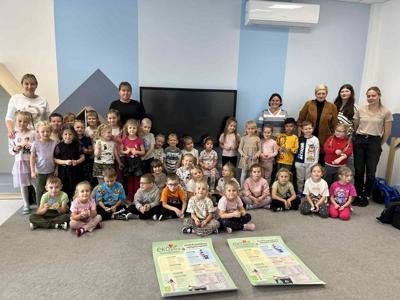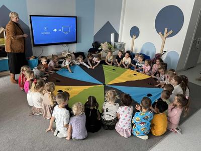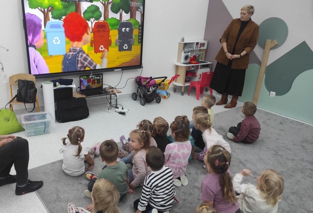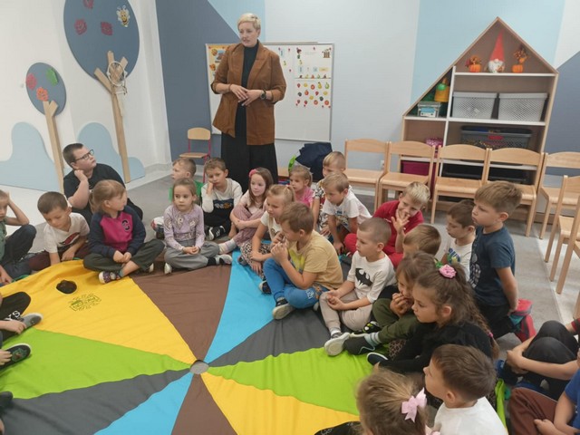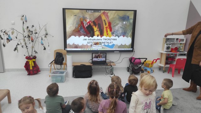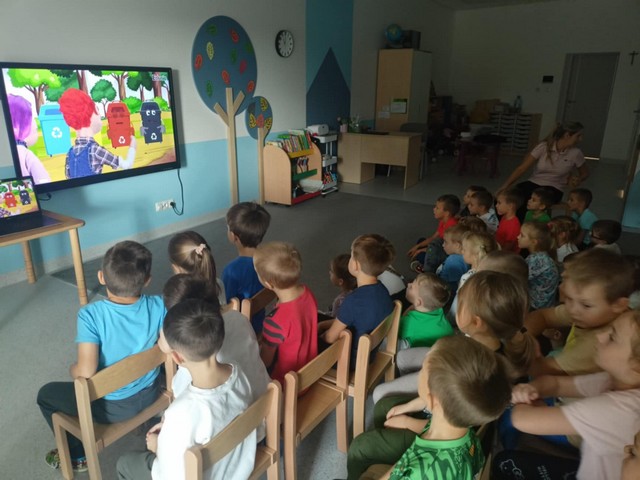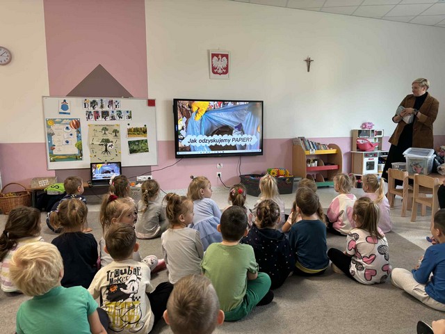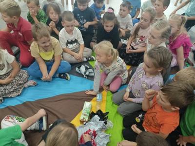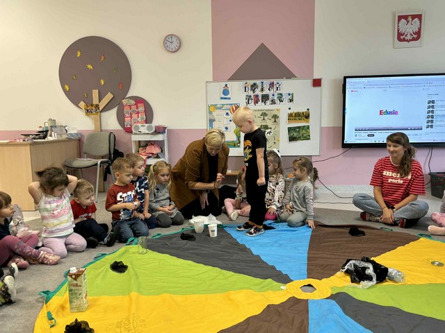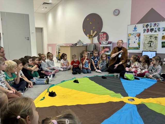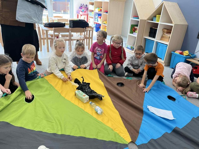 W piątek, 10 października, przedszkolaki ze wszystkich grup wzięły udział w spotkaniu z Panią Iwoną– przedstawicielką firmy SIRECO, która specjalizuje się w utylizacji odpadów. Podczas warsztatów dzieci dowiedziały się, jak prawidłowo segregować śmieci, a także mogły spróbować swoich sił w praktycznym zadaniu. Pani Iwona pokazała przedszkolakom, jak wyglądają przetworzone i odzyskane surowce, takie jak szkło, metal i plastik.