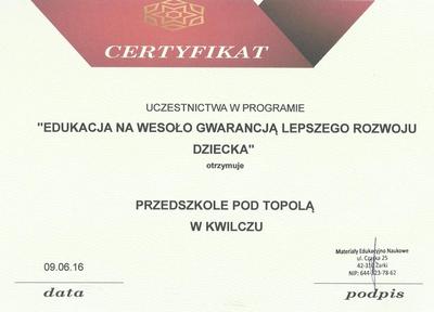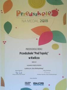 Przedszkole "Pod Topolą" w Kwilczu uzyskało honorowy tytuł PRIMUS NOMINATUS na lata 2016/2018