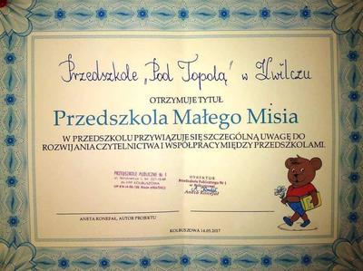 Dzięki zaangażowaniu naszych przedszkolaków i ich wychowawców oraz rodziców nasze przedszkole spełniło szereg wymogów i otrzymało tytuł PRZEDSZKOLA MAŁEGO MISIA. Jest to potwierdzenie, iż nasza placówka przywiązuje szczególna uwagę do rozwijania czytelnictwa...