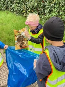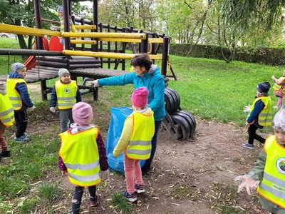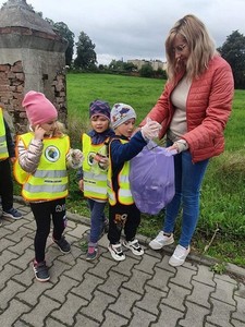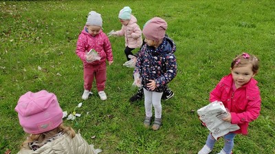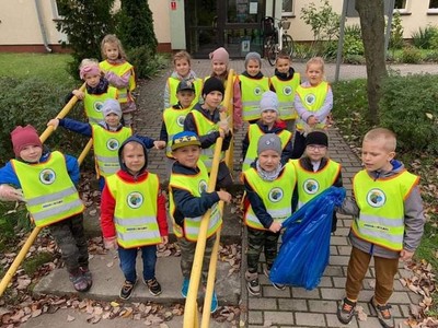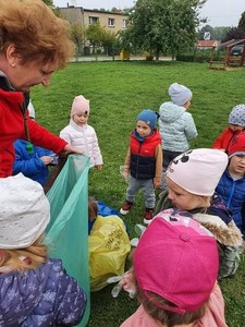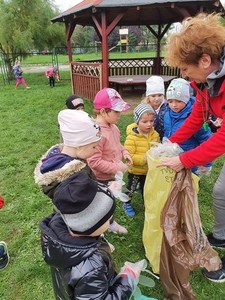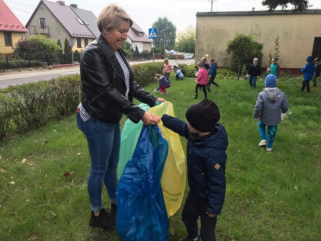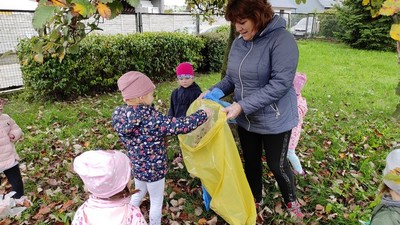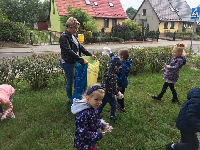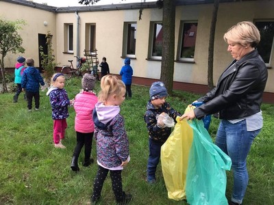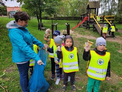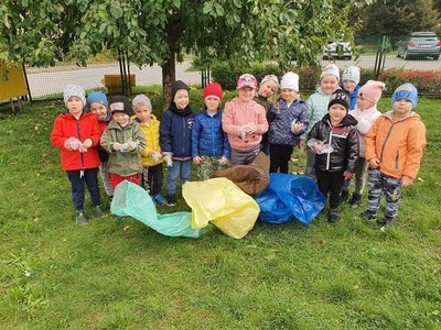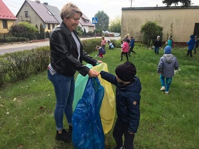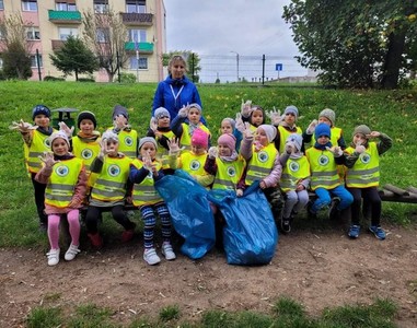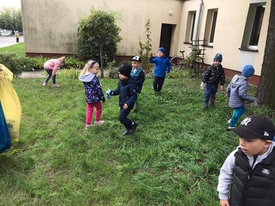 W dniach 21 -24 września przyłączyliśmy się do akcji "Sprzątanie świata – Polska", organizowanej przez fundację Nasza Ziemia, która jest częścią międzynarodowego ruchu „Clean Up The World”, wywodzącego się z Australii. W tym roku przebiegała ona pod hasłem "Myślę, więc nie śmiecę". Uczestniczy w nim blisko 40 milionów wolontariuszy na całym świecie. My także nie pozostaliśmy obojętni na problemy współczesnego świata. Przedszkolaki zaopatrzene w jednorazowe rękawiczki, worki na śmieci i pozytywnie zmotywowani wzniosłym celem przedsięwzięcia wyruszyli spod budynku przedszkola i zajęli się oczyszczaniem przydzielonego im terenu.