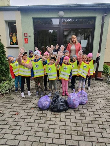 Pogoda dopisała, dzięki aktywnej postawie każdej grupie udało się zebrać po dwa worki śmieci, które następnie zostały złożone do odpowiednich pojemników. Dzieci ucieszyły się, że teraz już są prawdziwymi "przyjaciółmi przyrody" Udział naszych przedszkolaków w akcji Sprzątanie Świata z pewnością przyczyni się do ukształtowania wrażliwości na potrzeby środowiska naturalnego oraz nawyku dbałości o nie.
