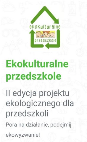W związku z realizacją głównego kierunku pracy przedszkola "Przedszkolak małym ekologiem" nasza placówka przystąpiła do II edycji projektu ekologicznego dla przedszkoli: