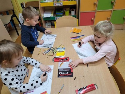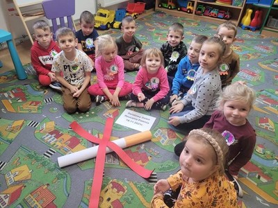 W dniu 18.11, jak co roku, najstarsze przedszkolaki brały udział w zajęciach poświęconych edukacji antynikotynowej. Celem głównym kampanii jest trwała zmiana zachowań zdrowotnych: zmniejszenie liczby osób palących przy dzieciach i kobietach w ciąży, zmniejszenie liczby osób będących biernymi palaczami. Jest to jedno z zagadnień realizowanego, w naszym przedszkolu, w listopadzie programu profilaktycznego "Czyste powietrze wokół nas". Dzieci dowiedziały się, że palenie szkodzi zdrowiu, jak wiele trujących substancji zawiera dym papierosowy i sam papieros oraz co to jest bierne palenie. Przedszkolaki obejrzały także prezentację multimedialną dotyczącą negatywnych skutków palenia tytoniu, w tym palenia biernego. Nie zabrakło zajęć muzycznych, technicznych i plastycznych nawiązujących do tematyki związanej z paleniem papierosów. Warto podkreślić, iż działania w ramach programu "Czyste powietrze wokół nas" umożliwią wykształcenie u dzieci świadomej umiejętności radzenia sobie w sytuacjach, w których inne osoby palą przy nich papierosy. Osobom palącym, które podejmują wysiłek uwolnienia się z nałogu życzymy wytrwałości w zmaganiach i sukcesów w walce o zdrowsze życie!