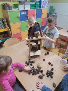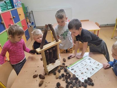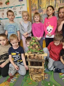 Przedszkolaki wykonały listopadowe zadanie projektu "Ekokulturalne przedszkole". Wspólnie stworzyliśmy "Hotele dla owadów", aby pomóc zapalaczom przetrwać zimę. Dzieci dowiedziały się, jak ważna jest rola owadów w produkcji pokarmów, które spożywamy. Była to także dobra okazja do utrwalenia nazw owadów, tych małych, ale jakże pożytecznych stworzeń.