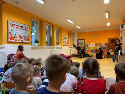 W dniu 1.12 br. nasze przedszkole odwiedzili artyści z Lubuskiego Biura Koncertowego "Orfeusz". Tym razem dzieci miały okazję uczestniczyć w koncercie pt. "Szewczyk Dratewka". W czasie spektaklu przedszkolaki poznały puzon i skrzypce, ich wygląd, budowę i brzmienie. Dzieci zapoznały się z muzyką charakterystyczną dla okolic Krakowa. Z zapartym tchem wysłuchały muzycznej opowieści o przygodach Szewczyka Dratewki, przekonując się, że muzyka potrafi pięknie opowiadać.