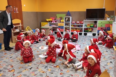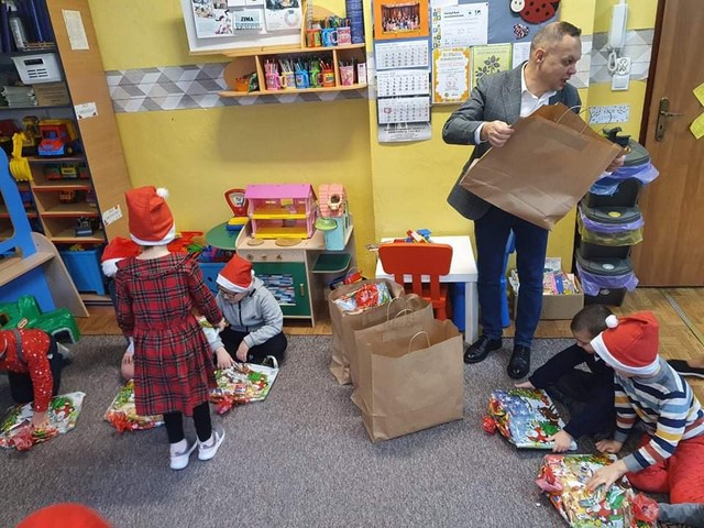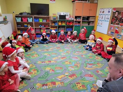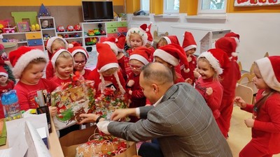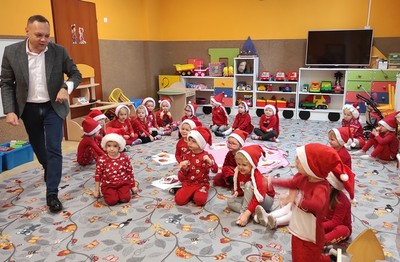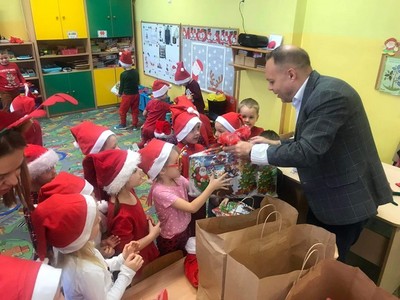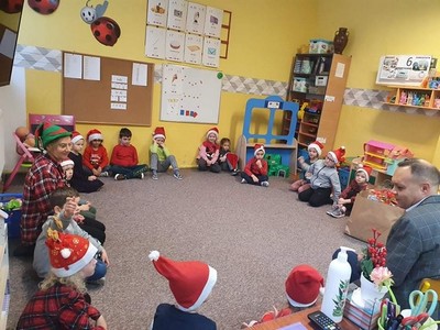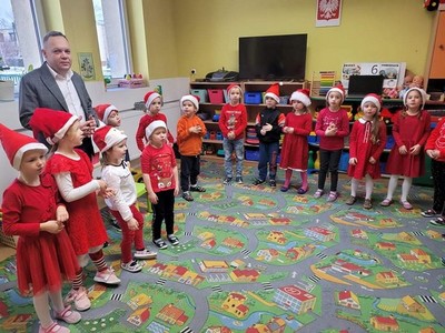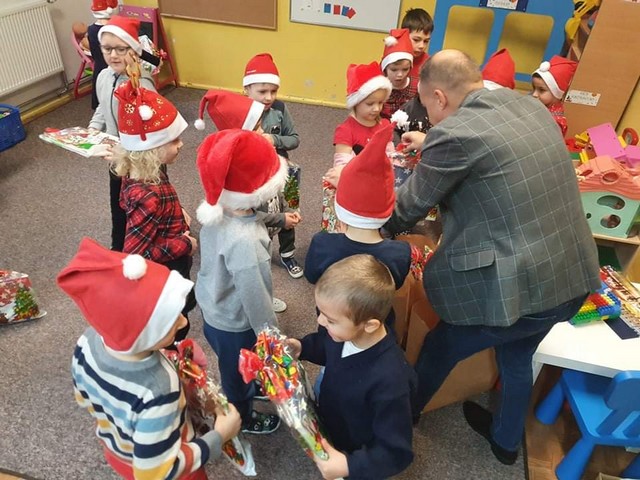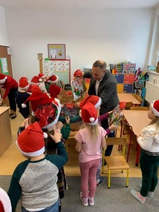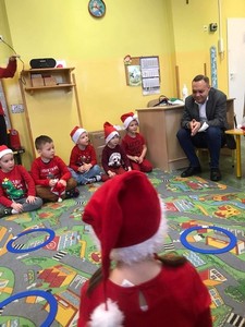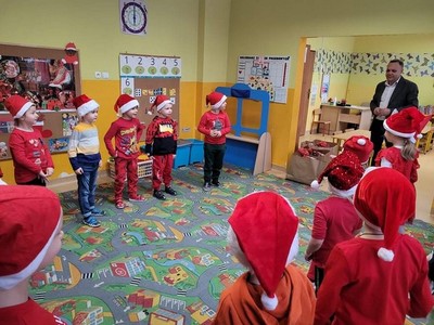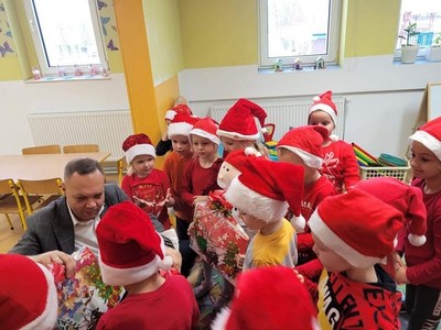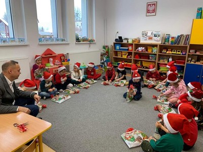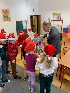 Dnia 6 grudnia, kiedy dzieci z niecierpliwością czekały na Mikołaja, w przedszkolu z wielkim workiem prezentów pojawił się Wójt Gminy Sławomir Wrembel. Wszystkie dzieci z przedszkola z radością przywitały miłego gościa, śpiewając piosenki i bawiąc się razem z nim. Nie zabrakło wierszyków oraz wspólnych zdjęć. Dziękujemy Panu Wójtowi za miłą niespodziankę.