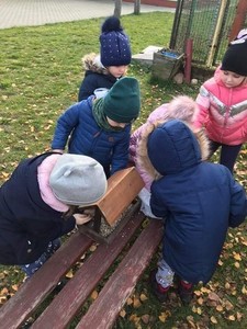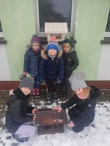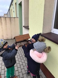 Przedszkolaki wykonały grudniowe zadanie projektu "Ekokulturalne przedszkole". Dzięki pomocy rodziców, każda grupa przedszkolna może poszczycić się swoim karmnikiem. W "ptasim barze" jest moc smakołyków dla fruwających przyjaciół. Doskonałym uzupełnieniem zadania były zajęcia edukacyjne o pomaganiu i dokarmianiu zwierząt w zime oraz wspaniałe prace plastyczne wykonane przez dzieci.