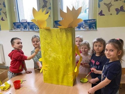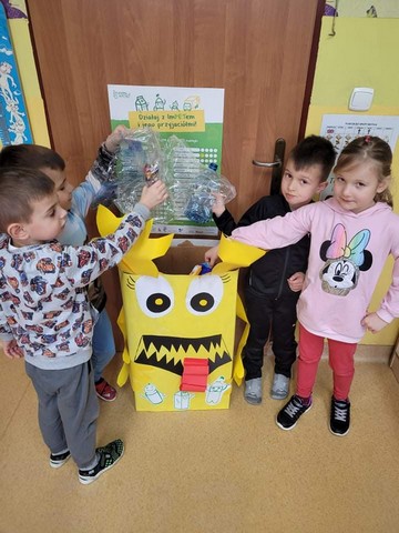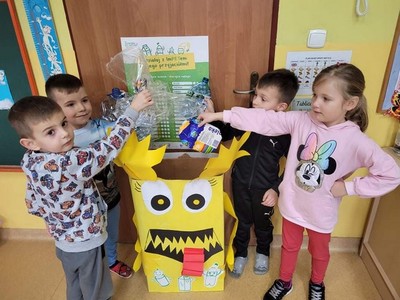 Nasze przedszkole systematycznie realizuje ogólnopolski projekt edukacyjny "Działaj z imPETem". Po wykonaniu wszystkich zadań i wypełnieniu kart pracy przyszła pora na pracę konkursową. "Przedszkolaki świat sprzątają, do żółtego wyrzucają"! Dzieci stworzyły "żółty pojemnik" niezbedny do zbierania odpadów z tworzyw sztucznych i metali. Karton pomalowały farbą plakatową, a następnie przykleiły elementy z kolorowego papieru. Zwyciezca zostanie wyłoniony w głosowaniu internetowym, które rozpocznie się 1 marca. Nasze przedszkolaki rozumieją potrzebę segregacji odpadów!