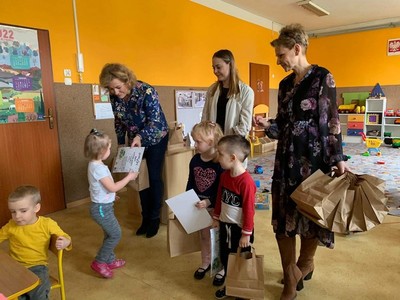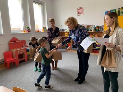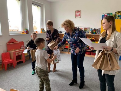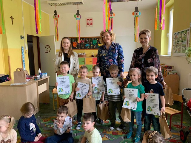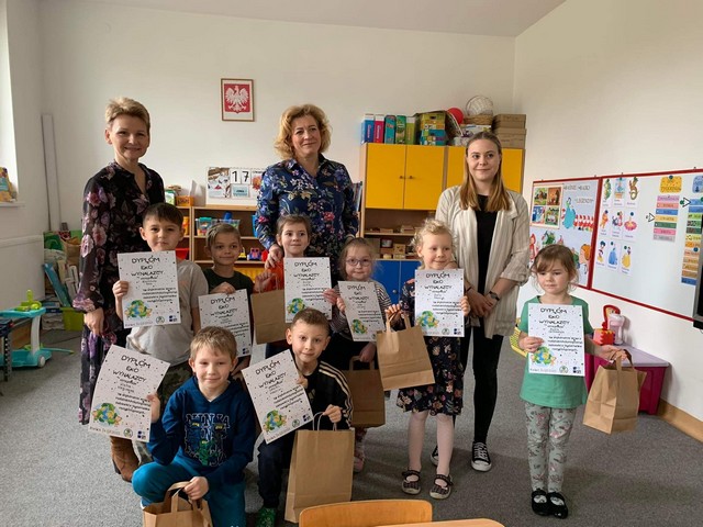 W dniu 17.02.2022r podsumowaliśmy naszą przedszkolną wystawę „Eko zabawka”. Dyrekcja przedszkola oraz Centrum Kultury i Edukacji wręczyła każdemu uczestnikowi pamiątkowy dyplom oraz drobny upominek w podziękowaniu za poświęcony czas, oryginalny pomysł oraz trud i ciężką pracę włożoną w przygotowanie projektów.