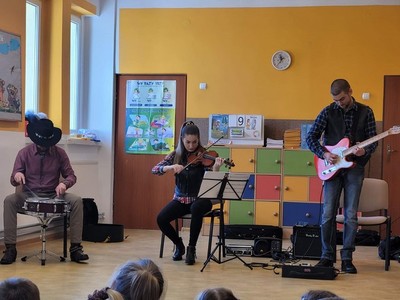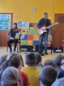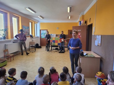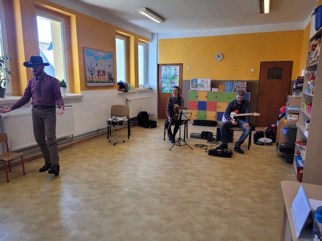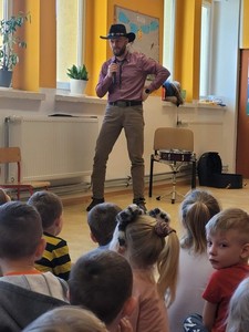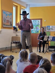 Dnia 9 marca br. dzieci z naszego przedszkola po raz kolejny uczestniczyły w koncercie, który został zorganizowany przez Lubuskie Biuro Koncertowe „Orfeusz”. Muzyczne spotkanie w stroju kowboja, poprowadził pan Mateusz Urbański. Motywem przewodnim koncertu była muzyka z Dzikiego Zachodu. Muzyczna „wyprawa” przeniosła słuchaczy w głąb Ameryki. Muzycy zaprezentowali melodie i piosenki w stylu country, np.: motyw przewodni z filmu „Bonanza”, piosenkę „Jambalaya”, a także utwór z repertuaru Krzysztofa Krawczyka „Hello, Mary Lou”. Goście zapoznali także dzieci z instrumentami, na których wygrywali amerykańskie ludowe szlagiery w stylu country, czyli z: banjo, skrzypcami, werblami i gitarą. Podczas koncertu interesującymi okazały się informacje na temat etymologii nazwy „Dziki Zachód”, „country” i „cowboy”. Spotkanie z muzyką Dzikiego Zachodu było ciekawą przygodą.
