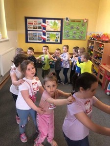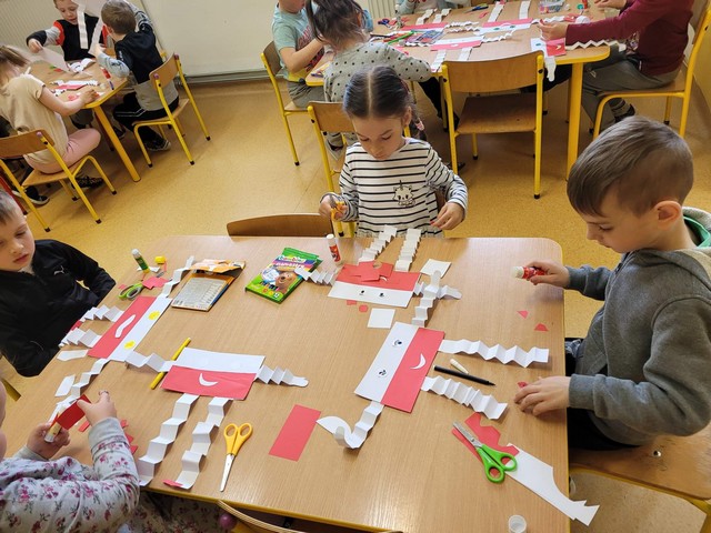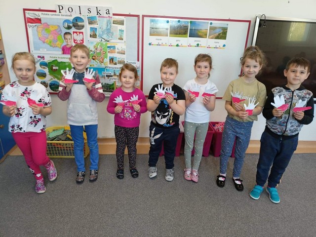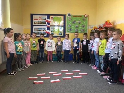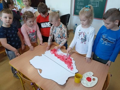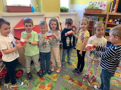 2 maja- Dzień Flagi Narodowej oraz 3 maja Uchwalenie Konstytucji 3 Maja. To wspaniały czas na przybliżenie dzieciom treści patriotycznych. W ostatnim tygodniu kwietnia przedszkolaki realizowały tematy, podczas których poznały polskie symbole narodowe, słuchały piosenek o naszej ojczyźnie, legend związanych z historią Polski i obejrzały projekcję filmu o powstaniu państwa polskiego. Wykonały prace plastyczne z wykorzystaniem różnorodnych technik: mapę Polski, flagę i godło, a także odkodowały flagę Polski z wykorzystaniem mapy do kodowania. Zajęcia były okazją do wzbudzenia zainteresowań historią Polski, kształtowania pozytywnych postaw i uczuć patriotycznych oraz szacunku wobec naszej ojczyzny.