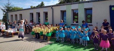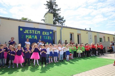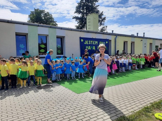 Rodzinnie, zdrowo i eko... a przede wszystkim aktywnie i wesoło spędziliśmy czas, podczas naszego Festynu Rodzinnego pod hasłem "JESTEM EKO Z MAMĄ I TATĄ" w dniu 11.06.2022r.Cała społeczność przedszkolna, rodziny i przyjaciele oraz goście: przedstawiciele Powiatowej Stacji Sanitarno-Epidemiologicznej w Międzychodzie, Komendy Powiatowej Policji w Międzychodzie oraz Straży Pożarnej i Młodzieżowej Drużyny Pożarniczej w Kwilczu, „Rodzinne rewolucje” z Sierakowa bawili się z nami od samego początku do końca, z uśmiechem na twarzach i we wspaniałej atmosferze. Na uczestników festynu czekały wspólne zabawy, konkursy, konkurencje ekologiczne, słodki poczęstunek, loteria fantowa i wiele innych atrakcji. Nie obyło się oczywiście bez pięknych występów naszych przedszkolaków. Każda grupa zaprezentowała swoją piosenkę ekologiczną. Największą atrakcją okazał się pokaz mody ekologicznej, podczas którego każdy z rodziców - projektantów omawiał swój pomysł, a dzieci prezentowały wspólnie przygotowany strój. Uwieńczeniem festynu był wspólny "Walc dla Mamy i Taty".Dziękujemy wszystkim za stworzenie tak miłej, rodzinnej atmosfery, a w szczególności Radzie Rodziców za duże zaangażowanie w organizację naszego festynu!!!