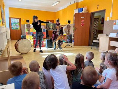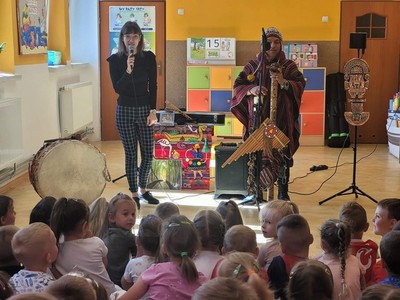 W dniu 15.06.2022r po raz kolejny nasze przedszkole odwiedziło Lubuskie Biuro Koncertowe. Tym razem nasi goście przygotowali koncert pt. „Instrumenty z bambusa”. Dzieci miały okazję poznać piękną indiańską muzykę, a także instrumenty, które Indianie tworzą m.in.: z bambusa czy też kopyt zwierząt. Przedszkolaki były zafascynowane nowo poznaną muzyką i bogato zdobionymi strojami Indian Ameryki Południowej.