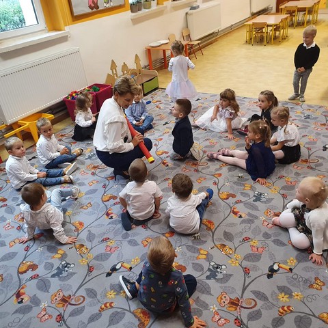 W tym dniu również w naszym przedszkolu odbyło się „Pasowanie na Przedszkolaka”. Był to szczególny dzień dla dzieci, które we wrześniu po raz pierwszy przekroczyły próg przedszkola. Pani dyrektor Bogumiła Jasińska, przyjęła dzieci do grona społeczności przedszkolnej. Wszystkie dzieci otrzymały pamiątkowe dyplomy, medale SUPER PRZEDSZKOLAKA oraz drobne upominki.