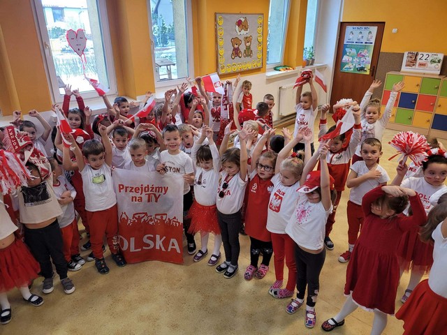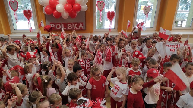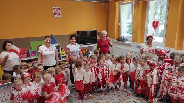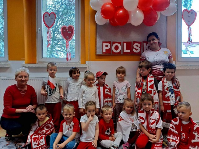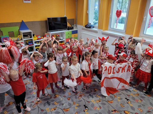 W dniu 22.11 br. przyłączyliśmy się do ogólnopolskiej akcji "Kibicujemy reprezentacji Polski podczas Mistrzostw Świata w Katarze" zorganizowanej przez portal "Bliżej Przedszkola".#BliżejprzedszkolnaStrefaKibica