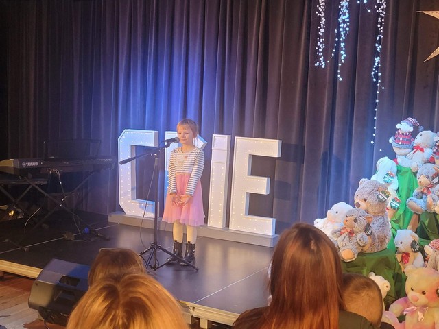 W dniu 2.12 br. nasze przedszkolaki miały możliwość wziąć udział w powiatowym przeglądzie piosenki świątecznej "Kwileckie Kolędziołki", który od kilku lat organizowany jest przez CEiK w Kwilczu. Przygotowania do konkursu wprowadziły nas w atmosferę świąt Bożego Narodzenia. Poniżej nasi reprezentanci i tytuły piosenek, które zaśpiewali: Rozalia Łecka - "Nie płacz Jezu", Anastazja Ratajczak - "Gdzie Ty mieszkasz Jezu?", Helena Wolska - "Była noc", Maria Kubów - "Wesoła choinka", Szymon Kaczmarek - "Zbudźcie się już pastuszkowie". Wszystkie dzieci podeszły do konkursu z dużym zaangażowaniem, dlatego też emocje na widowni sięgały zenitu. Miło nam ogłosić, iż wyróżnienie w kategorii dzieci przedszkolne (do 6 lat) zdobyła Helena Wolska. Wszystkim wokalistom serdecznie gratulujemy!