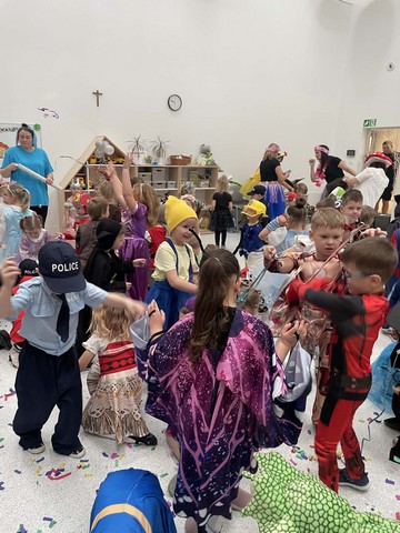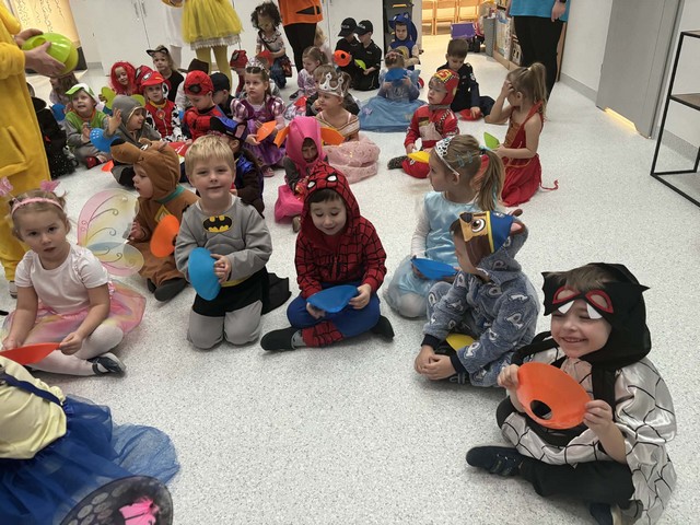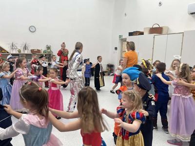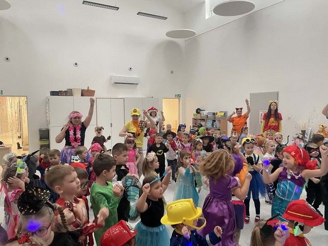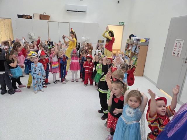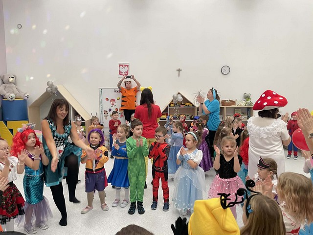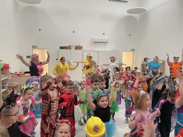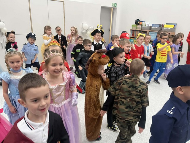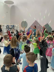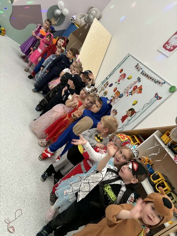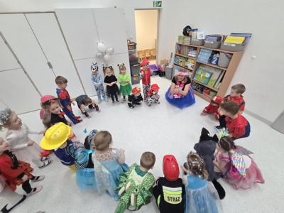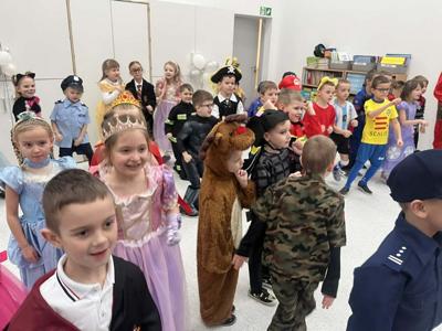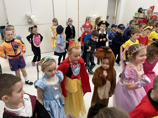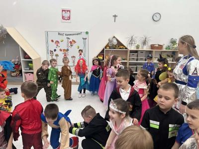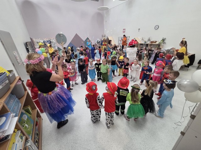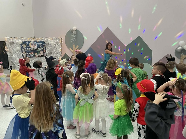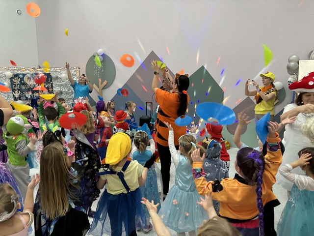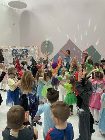 Karnawał to wyjątkowy czas przepełniony radością, muzyką i tańcem. To okres, w którym nie brakuje uśmiechów i dobrej zabawy. Nasze przedszkolaki także postanowiły świętować ten magiczny czas podczas długo wyczekiwanego balu karnawałowego, który odbył się 16 stycznia 2026 roku. W tym dniu przedszkole wypełniło się barwnymi postaciami z bajek, można było spotkać również przedstawicieli służb ratunkowych oraz urocze zwierzątka. Wiele przebrań było tak pomysłowych, że trudno było od razu rozpoznać, kto się pod nimi kryje. Na tę szczególną okazję przedszkolne sale zostały pięknie udekorowane. Balony, serpentyny, proporczyki oraz inne kolorowe ozdoby stworzyły prawdziwie karnawałową atmosferę i zachęcały dzieci do wspólnej zabawy. Radosne chwile spędzone razem sprawiły przedszkolakom ogromną przyjemność, a uśmiechy na ich twarzach były najlepszym dowodem udanego balu. Dzieci z entuzjazmem tańczyły przy skocznej muzyce i z radością uczestniczyły w różnorodnych zabawach.